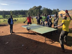 その後はエドウィンの母校へ。すると卓球やバレーボール、バスケットボールをして遊んでいる生徒を発見。陸上部の人にも会った。