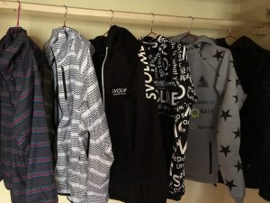 そうすると割と良い感じで洋服掛けの完成。部屋らしさも増してきた。