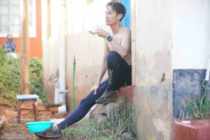 ホットウォーターをタオルに浸して拭いている写真は光の感じが何だか良い感じ。チャイを飲んでいる写真は、