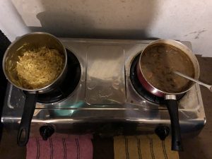 いつも通り朝食を済ませた後は、エルドレットに買い物へ。調味料や油がなくなってきたので、調達へ。イテンにもスーパーマーケットはあるのだが、品揃えが良くない(そもそも置いてない商品が多数ある)ため、移動時間は1時間以上かかるが気合を入れていざマタトゥー(相乗りタクシー)に乗り込む。